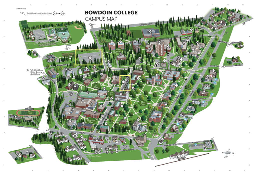 Driving South to North: Take I-95 North to exit #44, merge onto I-295 North to exit #28, follow Route 1 onto Pleasant St into Downtown Brunswick, take a right on Maine St. and Bowdoin College will be on your left.